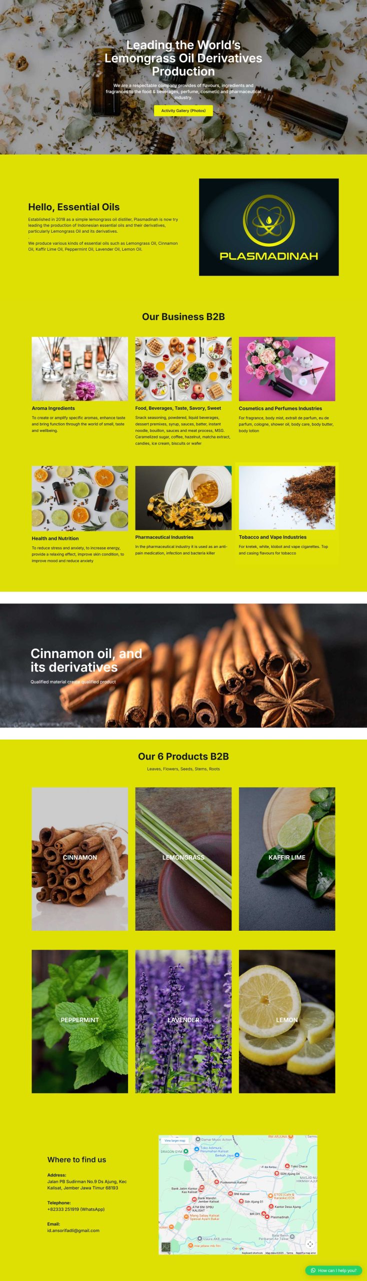 Ingin website yang benar-benar menghasilkan transaksi ekspor? Kami merancang Landing Page yang kuat dan informatif untuk Plasmadinah, memastikan minyak atsiri premium mereka tersampaikan citranya secara maksimal kepada calon buyer global.